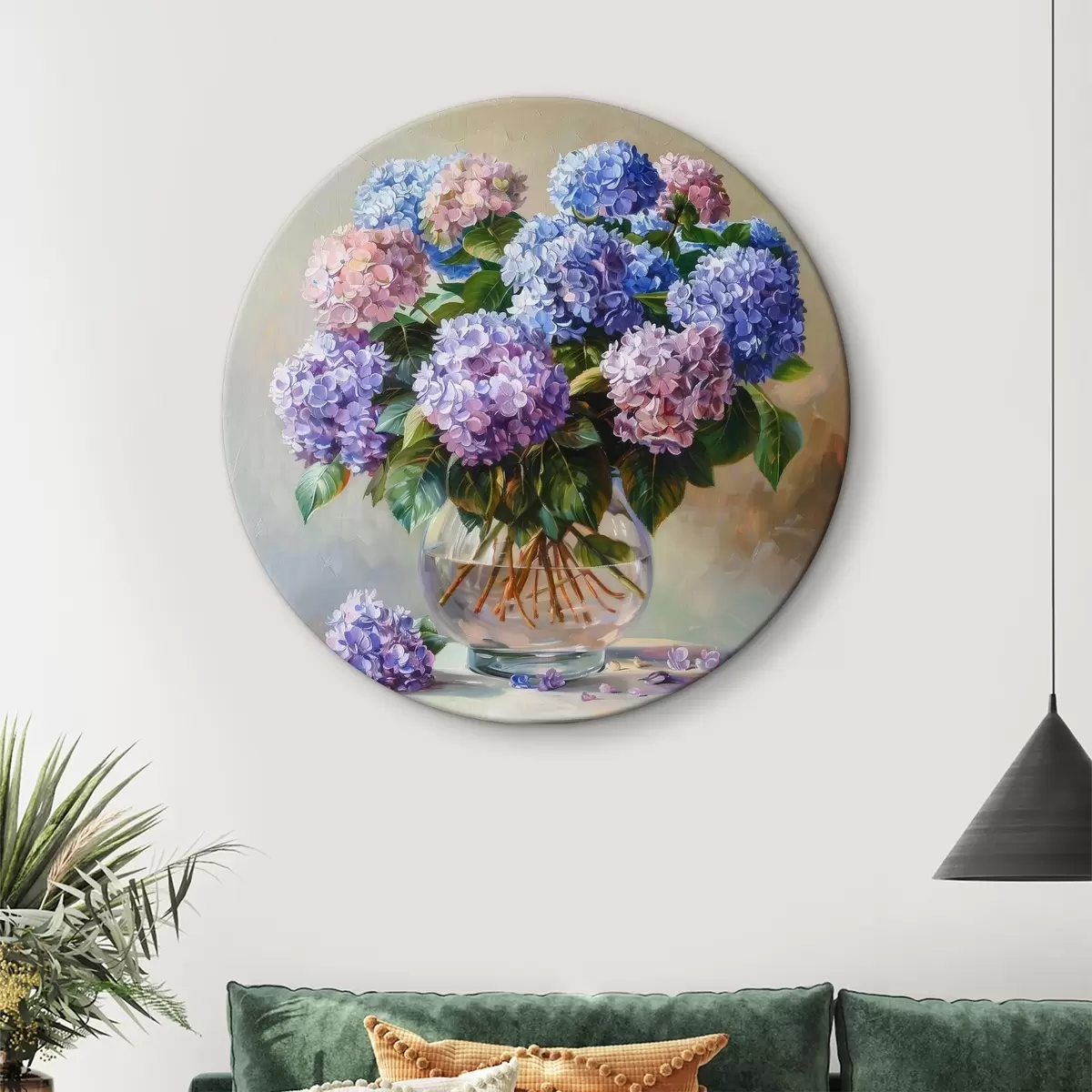 Ronde schilderijen Prachtig boeket hortensia's Nr r38708