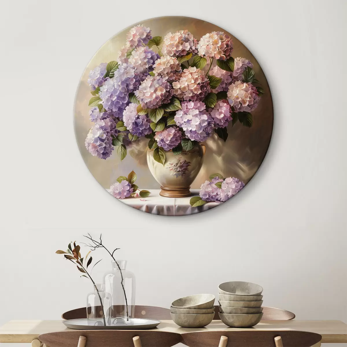Ronde schilderijen Fijne hortensia's op tafel Nr r38710