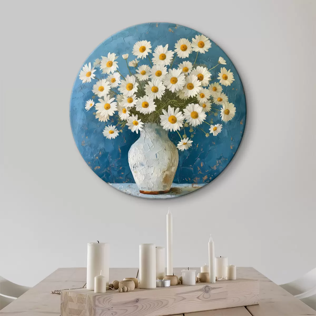 Ronde schilderijen Madeliefjes in een vaas Nr r38719