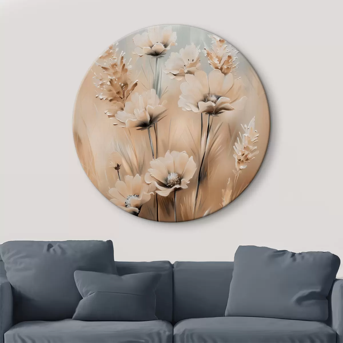 Ronde schilderijen Bloemen in het veld in beige tinten Nr r38720