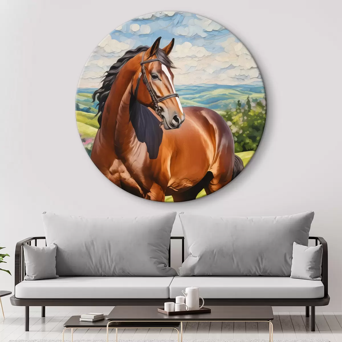 Ronde schilderijen Mooi paard op het gazon, blauwe lucht Nr r38727