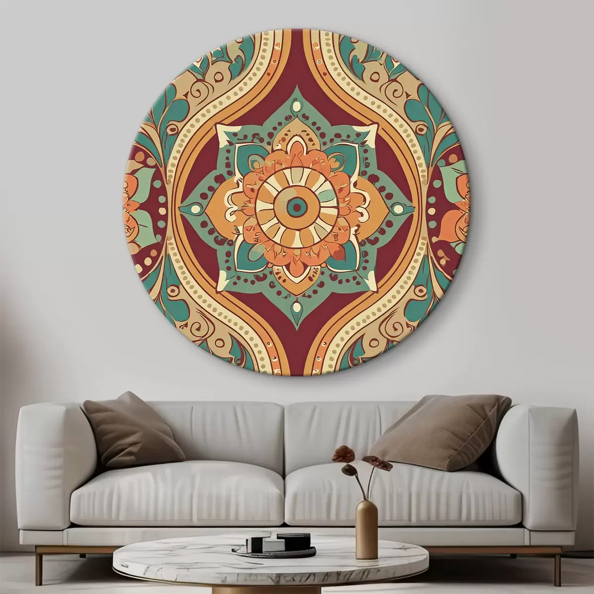 Ronde schilderijen Abstractie in turquoise en beige kleuren Nr r38729