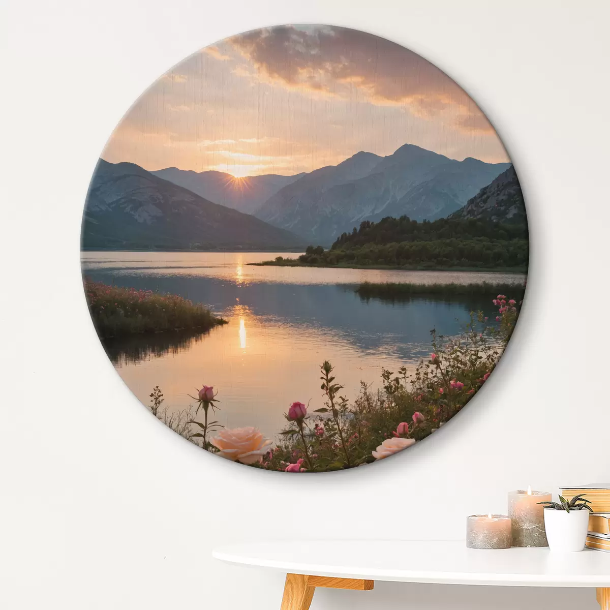 Ronde schilderijen Schemerlandschap over het meer Nr r38735