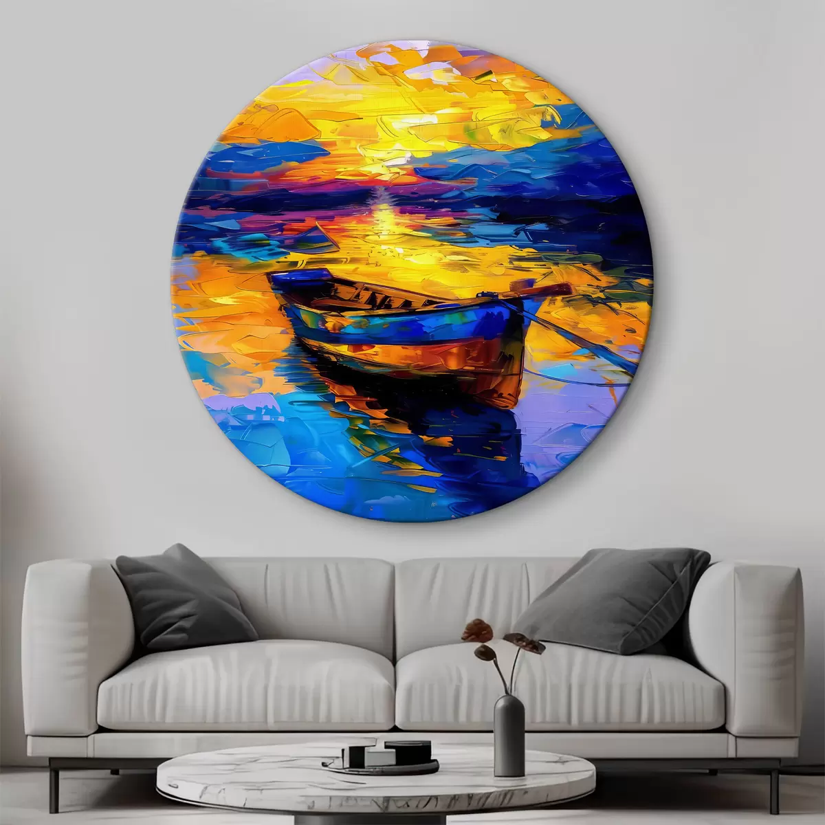 Ronde schilderijen Heldere zonsondergang over de rivier Nr r38742