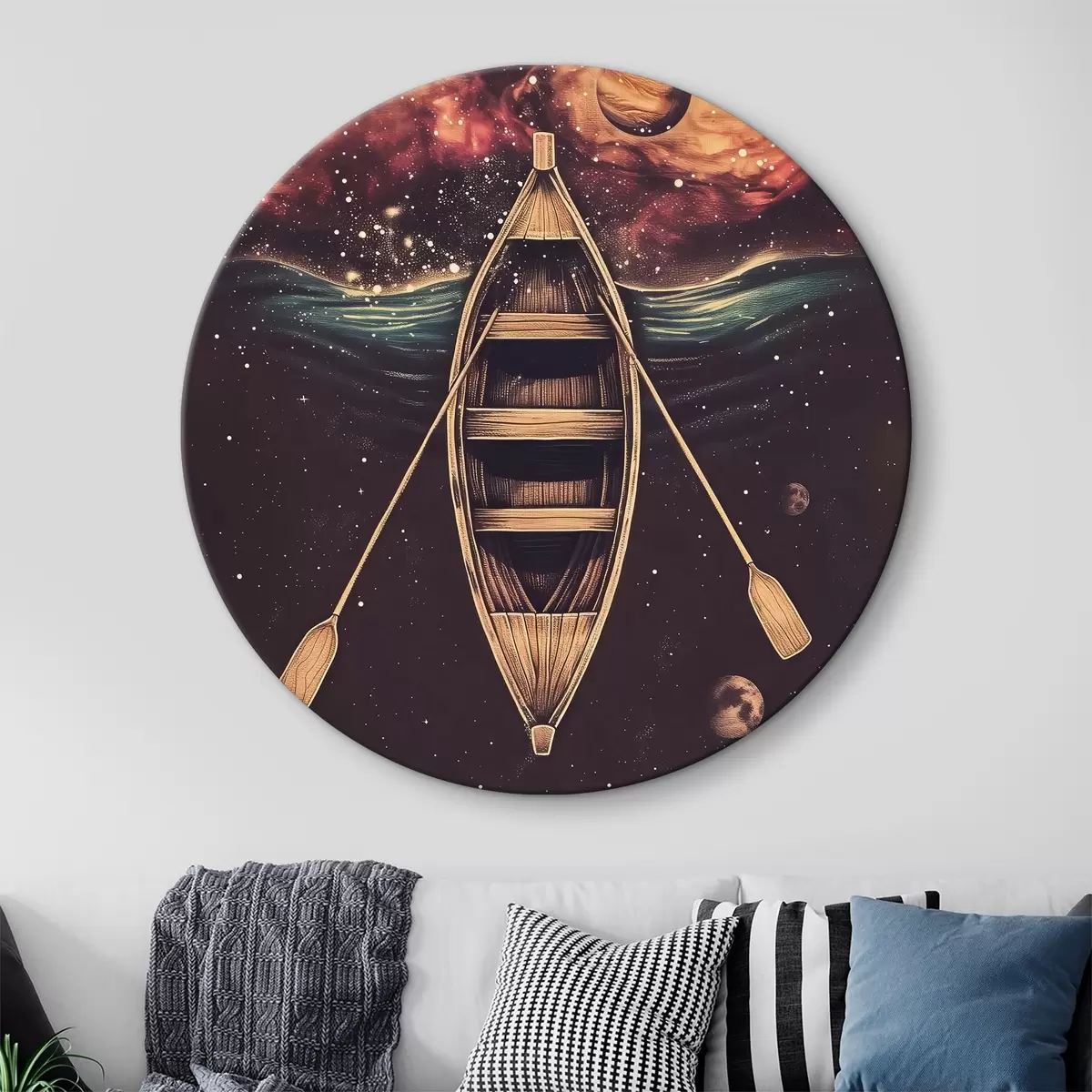 Ronde schilderijen Een boot drijft in de ruimte Nr r38744