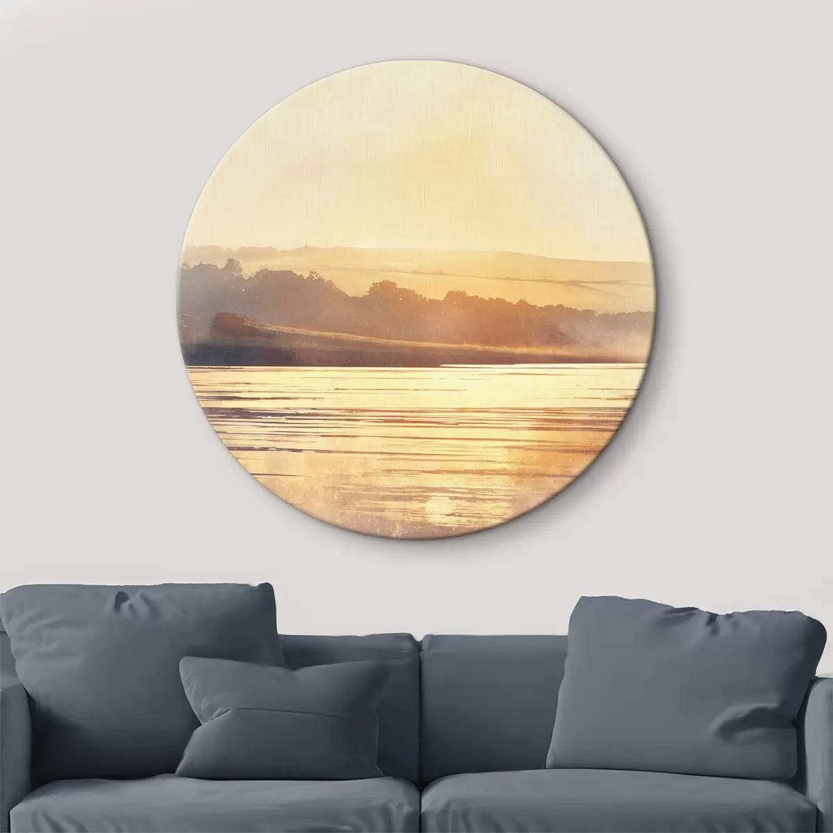 Ronde schilderijen Dageraad boven de rivier r38760
