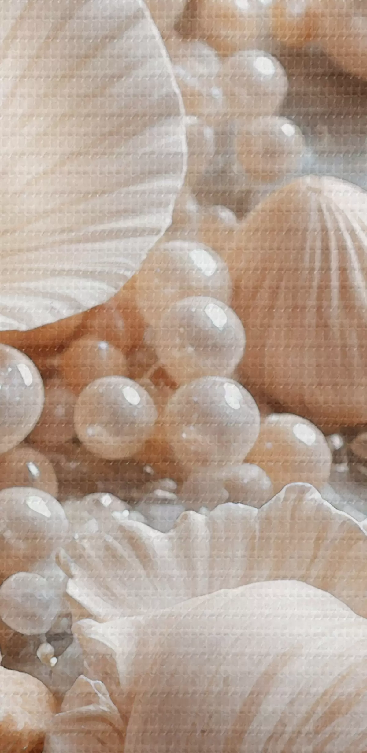 Ronde schilderijen Geassorteerde schelpen en parels op een lichtblauwe achtergrond Nr r38769