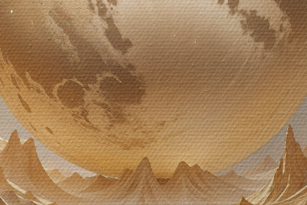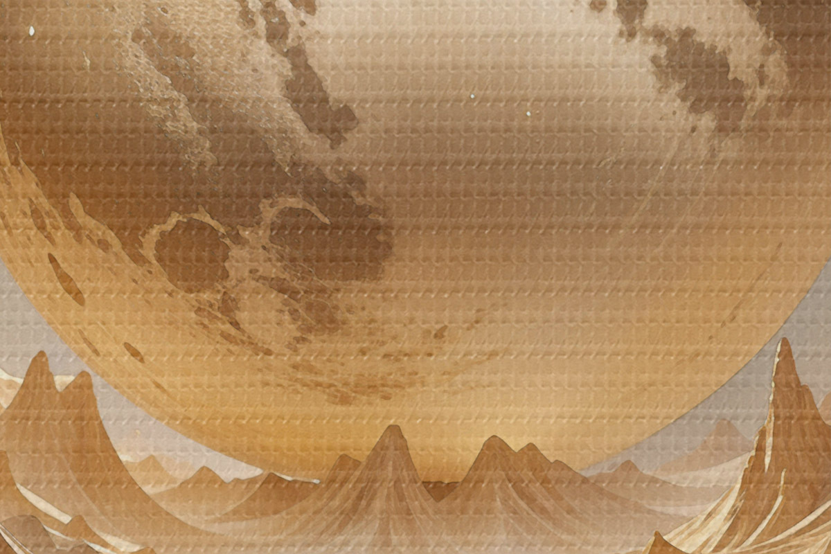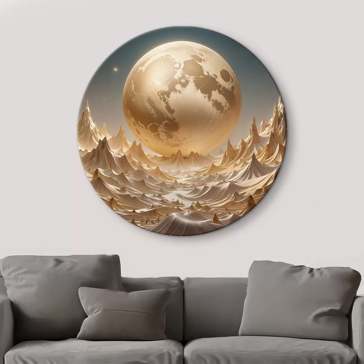 Ronde schilderijen Stralende volle maan boven een surrealistisch, bergachtig landschap met bergtoppen Nr r38775