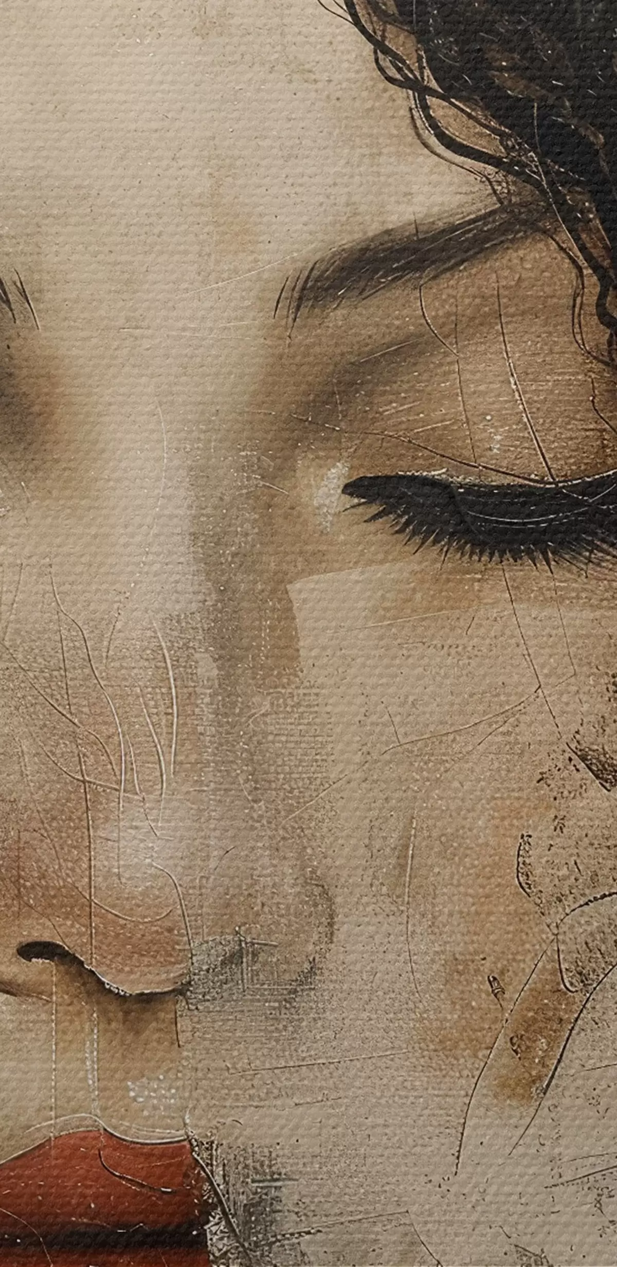 De fijne weving van draden op dit doek lijkt op het oppervlak van professionele schildersdoeken.