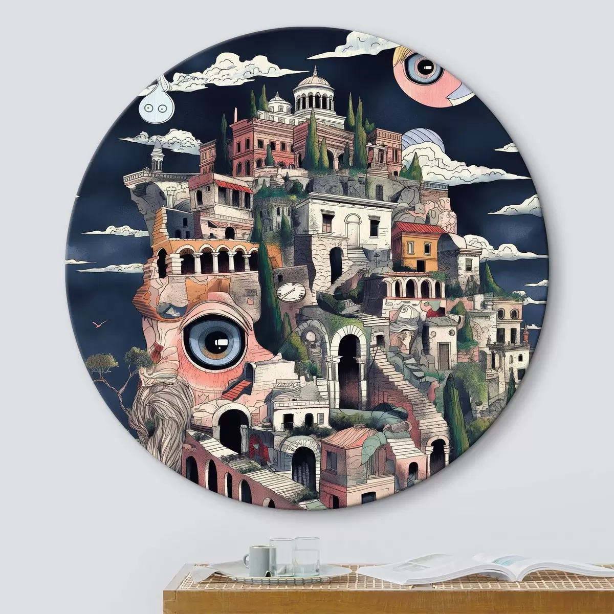 Ronde schilderijen De stad is abstract Nr r38802