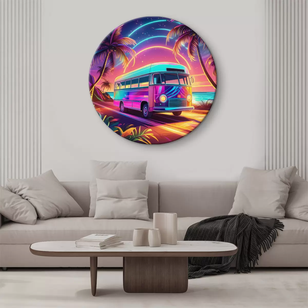 Ronde schilderijen Rode retro auto op het strand Nr r38811