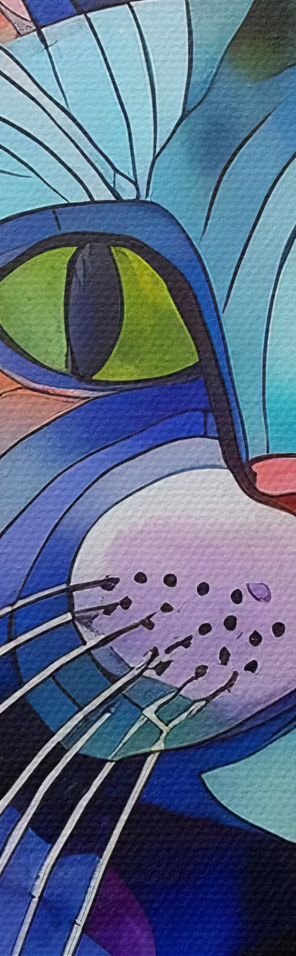 Het schilderij kan direct na ontvangst worden opgehangen. Het schilderij wordt opgespannen op een 2 cm breed houten spieraam.