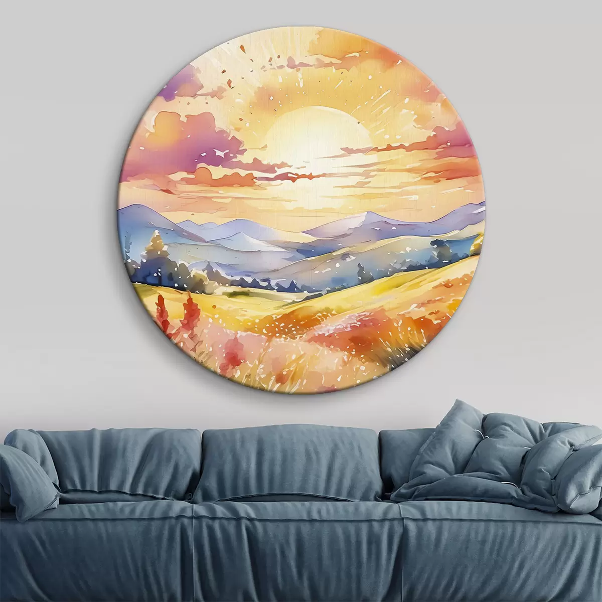 Ronde schilderijen Landschap met bloemen en bergen Nr r38843