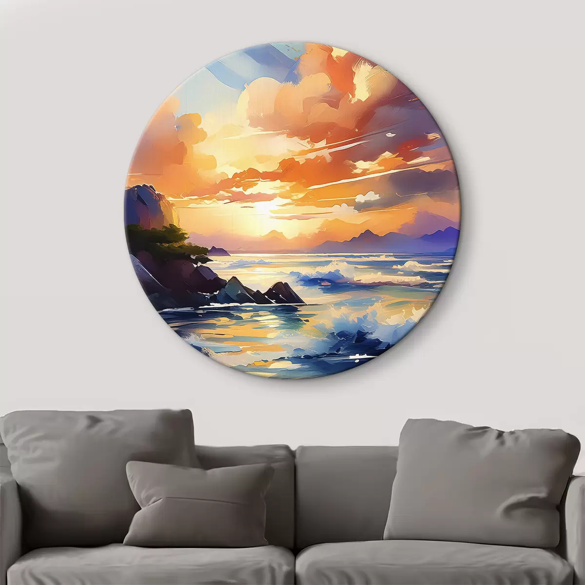 Ronde schilderijen Storm bij zonsopgang Nr r38846