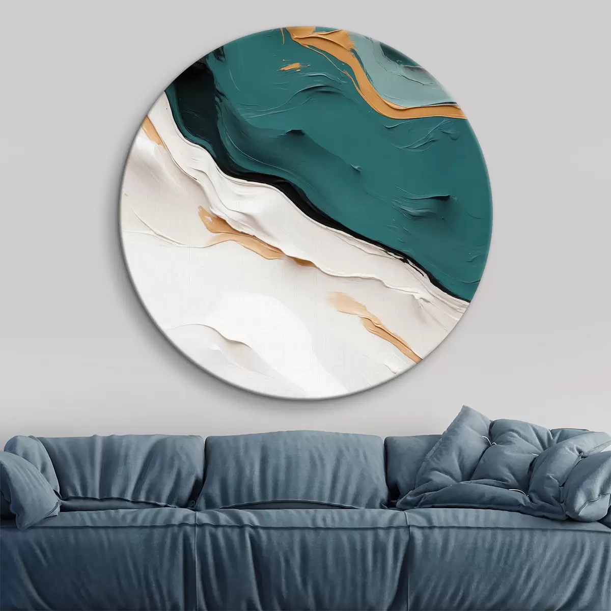 Ronde schilderijen Zee en wit besok in olie Nr r38854