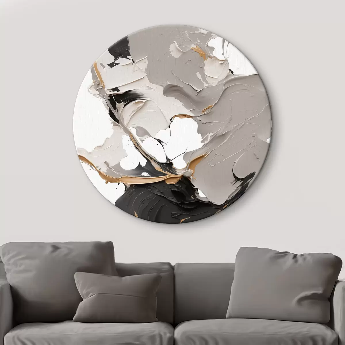 Ronde schilderijen Abstract schilderij in witte en grijze kleuren Nr r38855