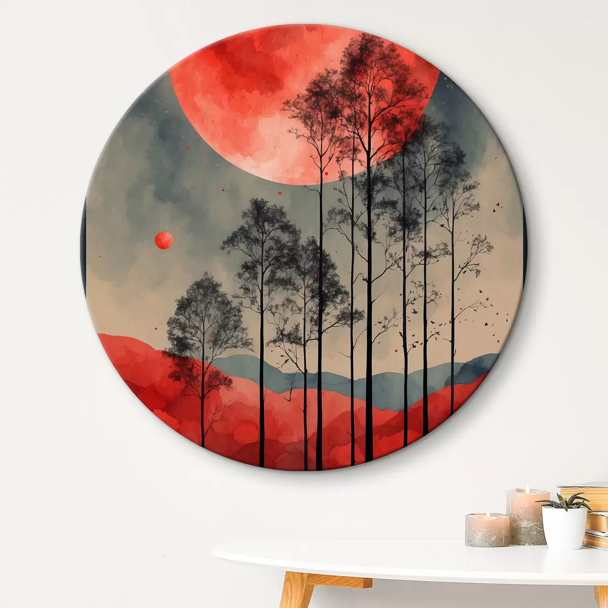 Ronde schilderijen Een bloedige volle maan boven het bos r38862