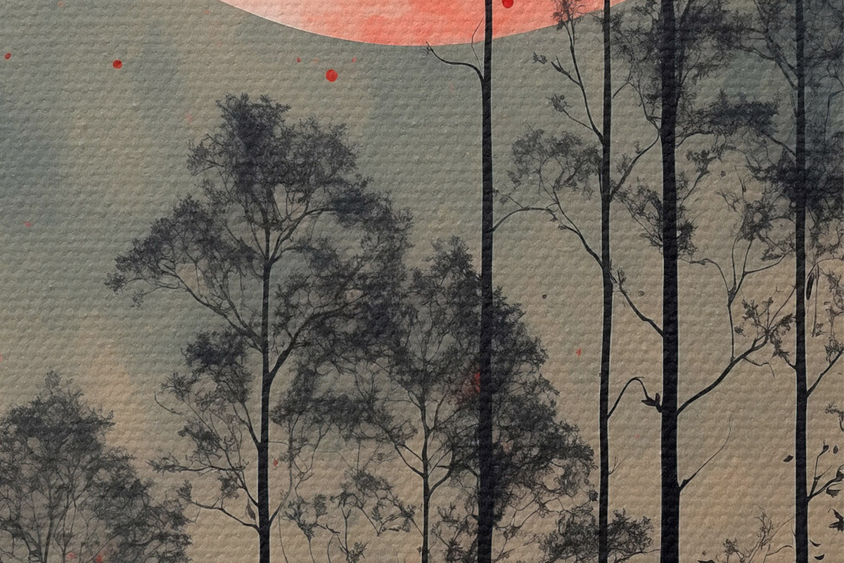 Ronde schilderijen Een bloedige volle maan boven het bos Nr r38862