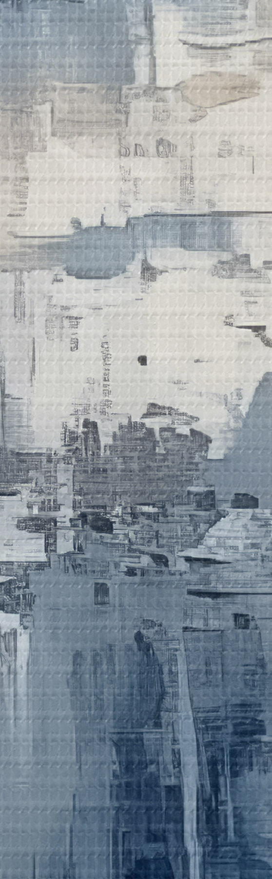Ronde schilderijen Abstract minimalistisch olieverfschilderij, gewreven, geometrisch, vlek, blauwe en witte kleur Nr r38906