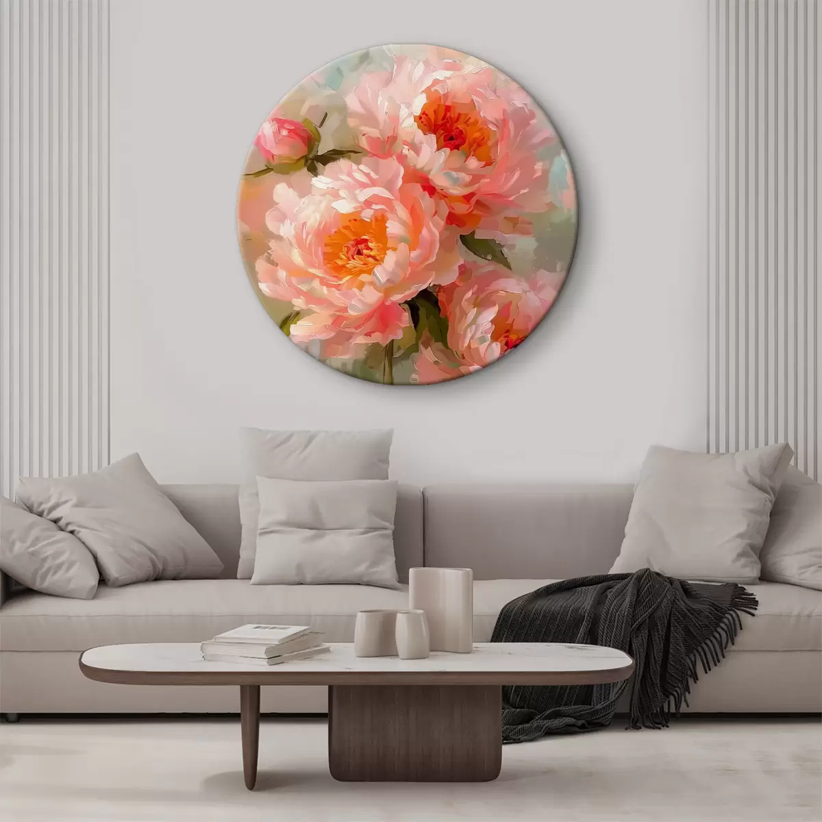 Ronde schilderijen Roze grote bloemen Nr r38928
