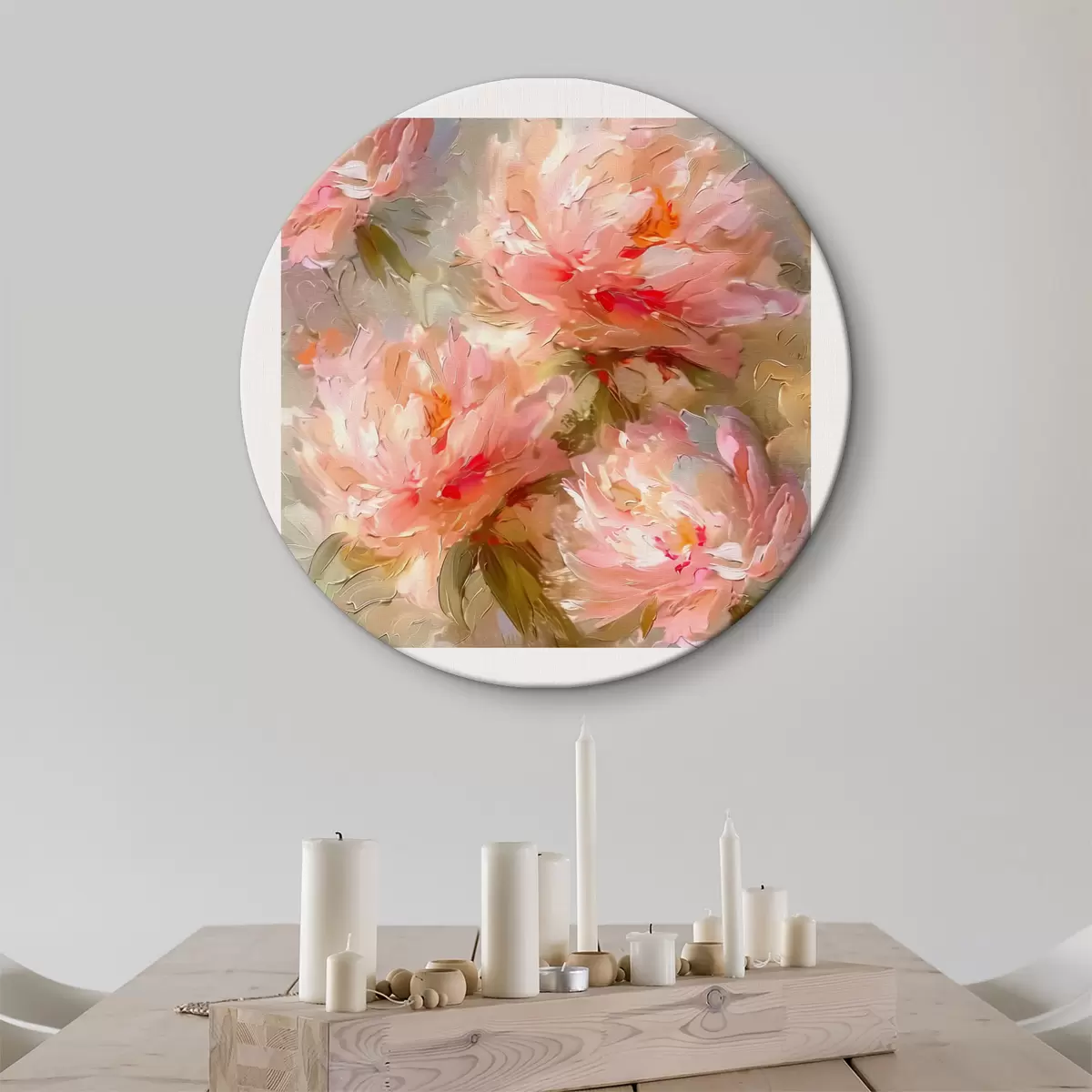 Ronde schilderijen Roze grote bloemen Nr r38929
