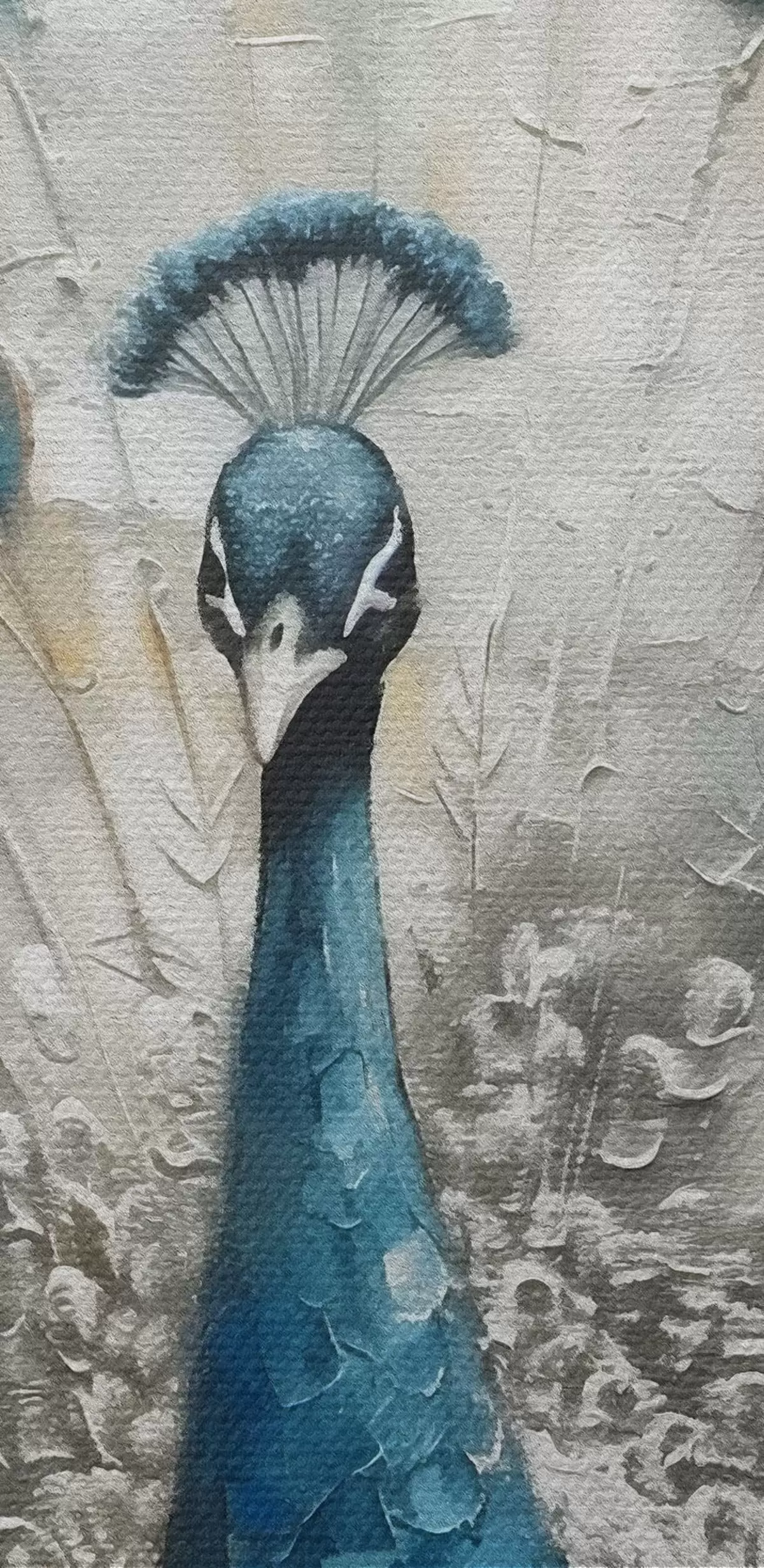 Ronde schilderijen Blauwe pauwvogel met veren gedrukte textuur Nr r38931