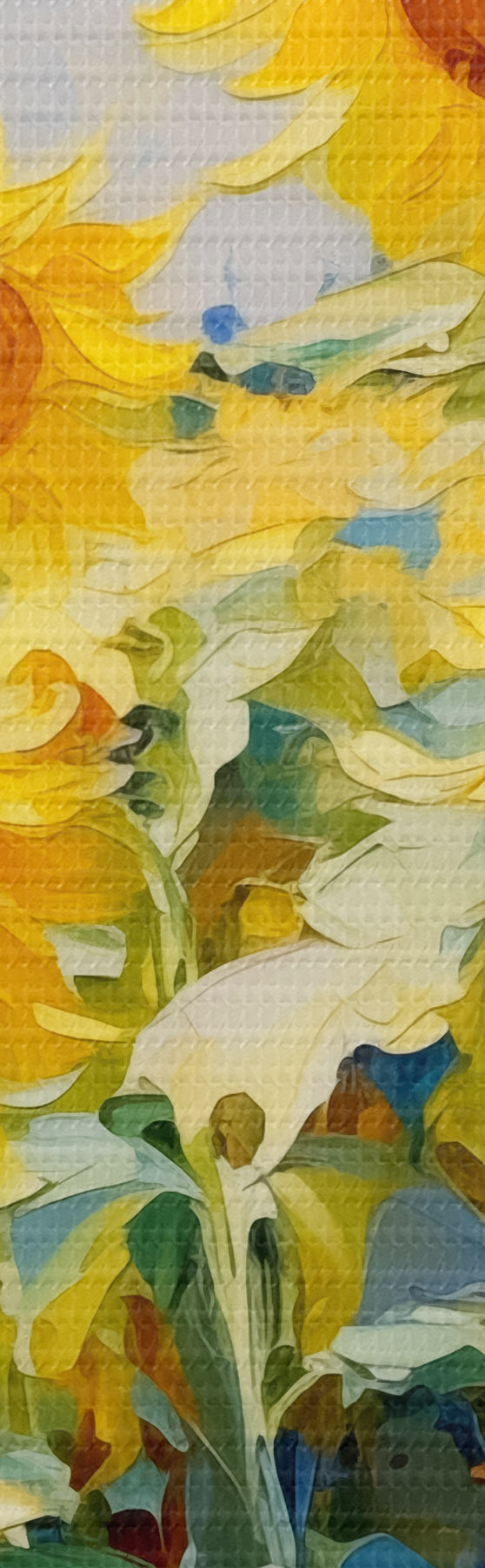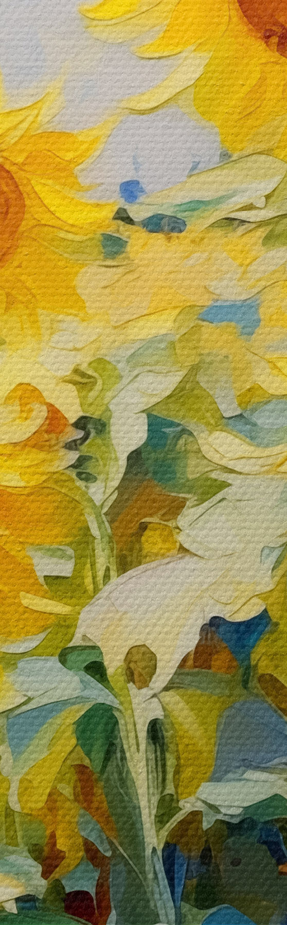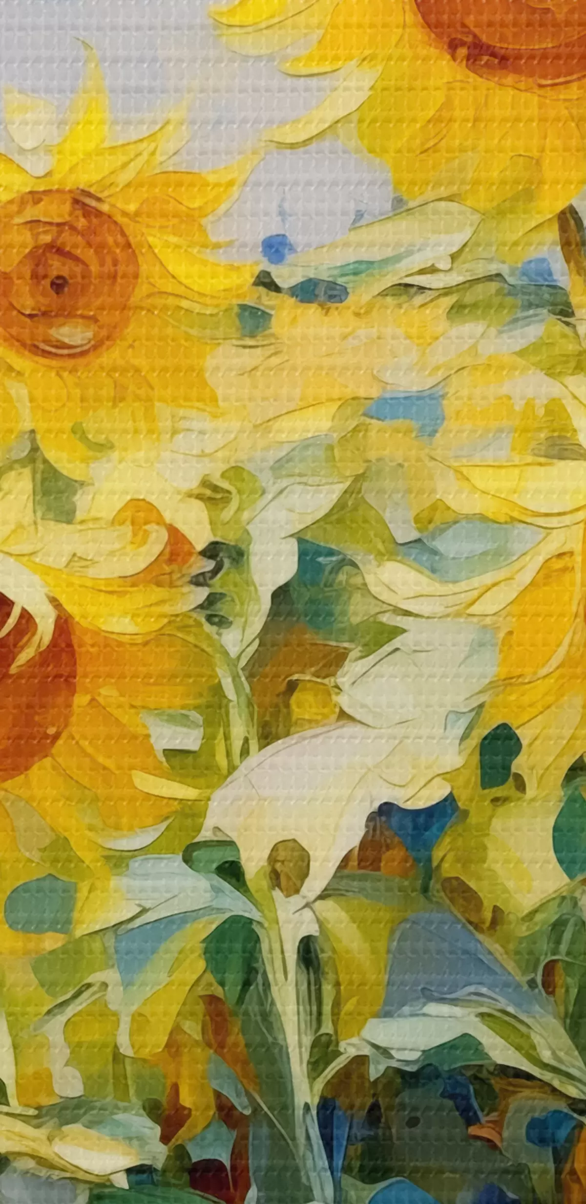 Ronde schilderijen Veld met zonnebloemen olieverfschilderij, gele en blauwe kleur Nr r38953