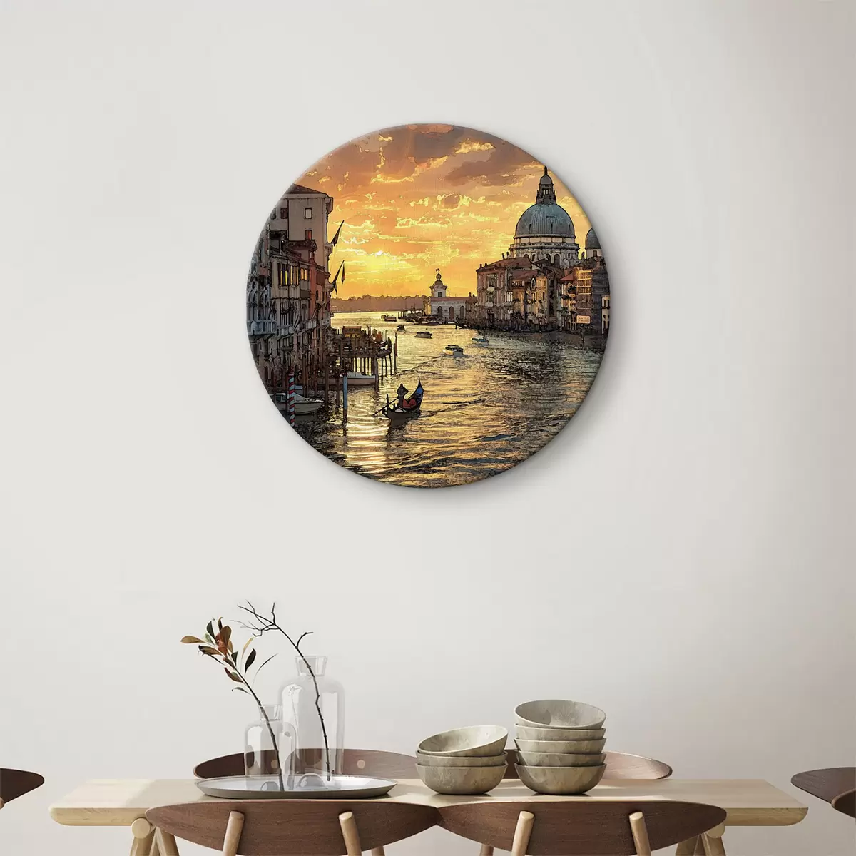 Ronde schilderijen Een schilderachtig schilderij van het Canal Grande in Venetië, Italië bij zonsondergang. r38963