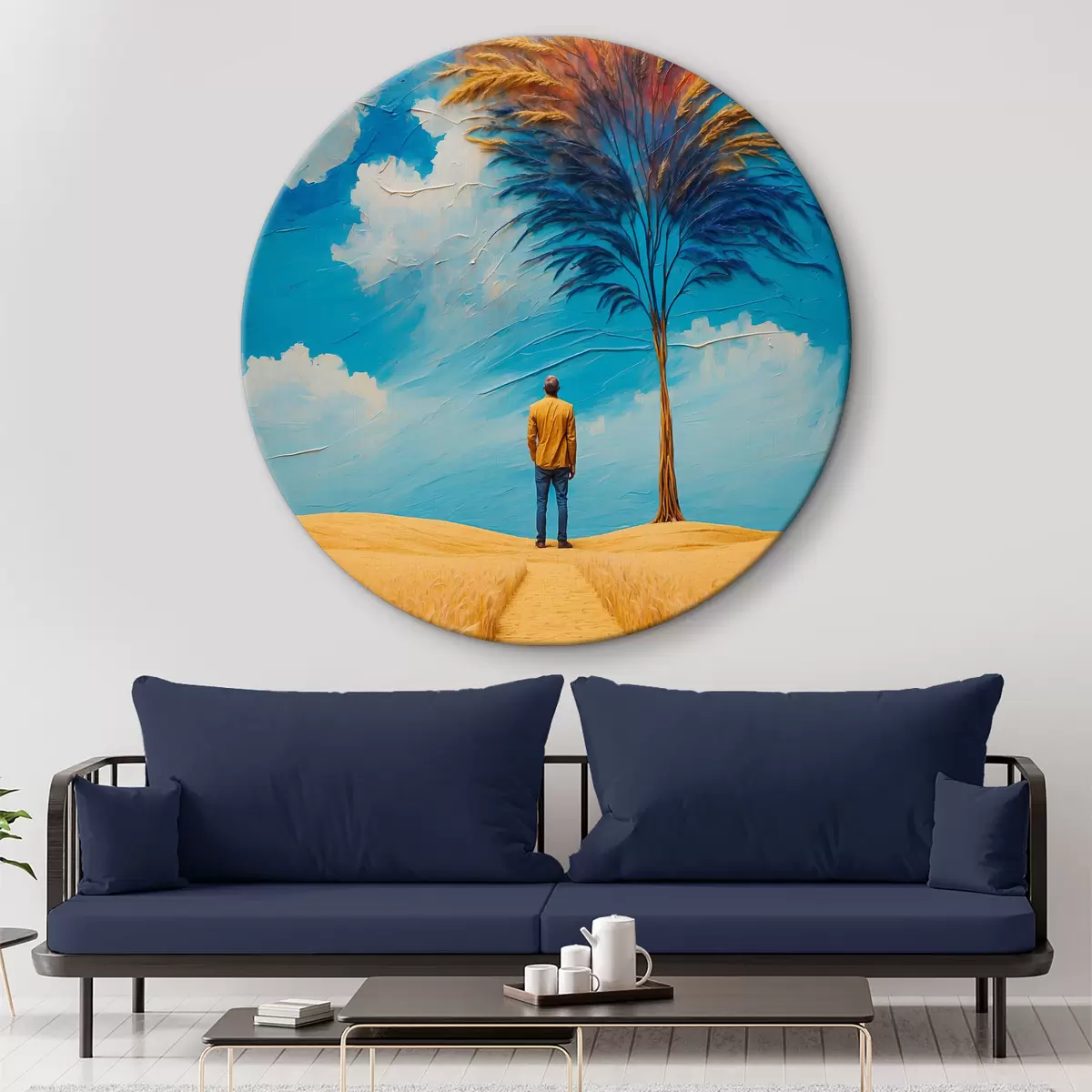 Ronde schilderijen Een kluizenaar in een tarweveld r39006