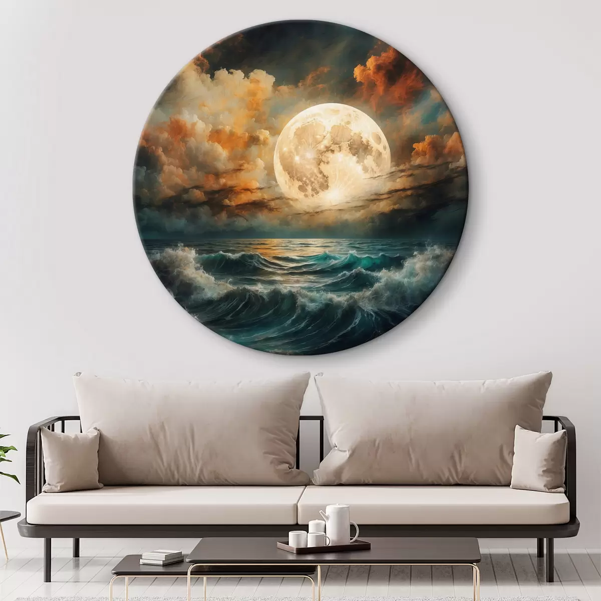 Ronde schilderijen Volle maan boven de stormachtige zee Nr r39007