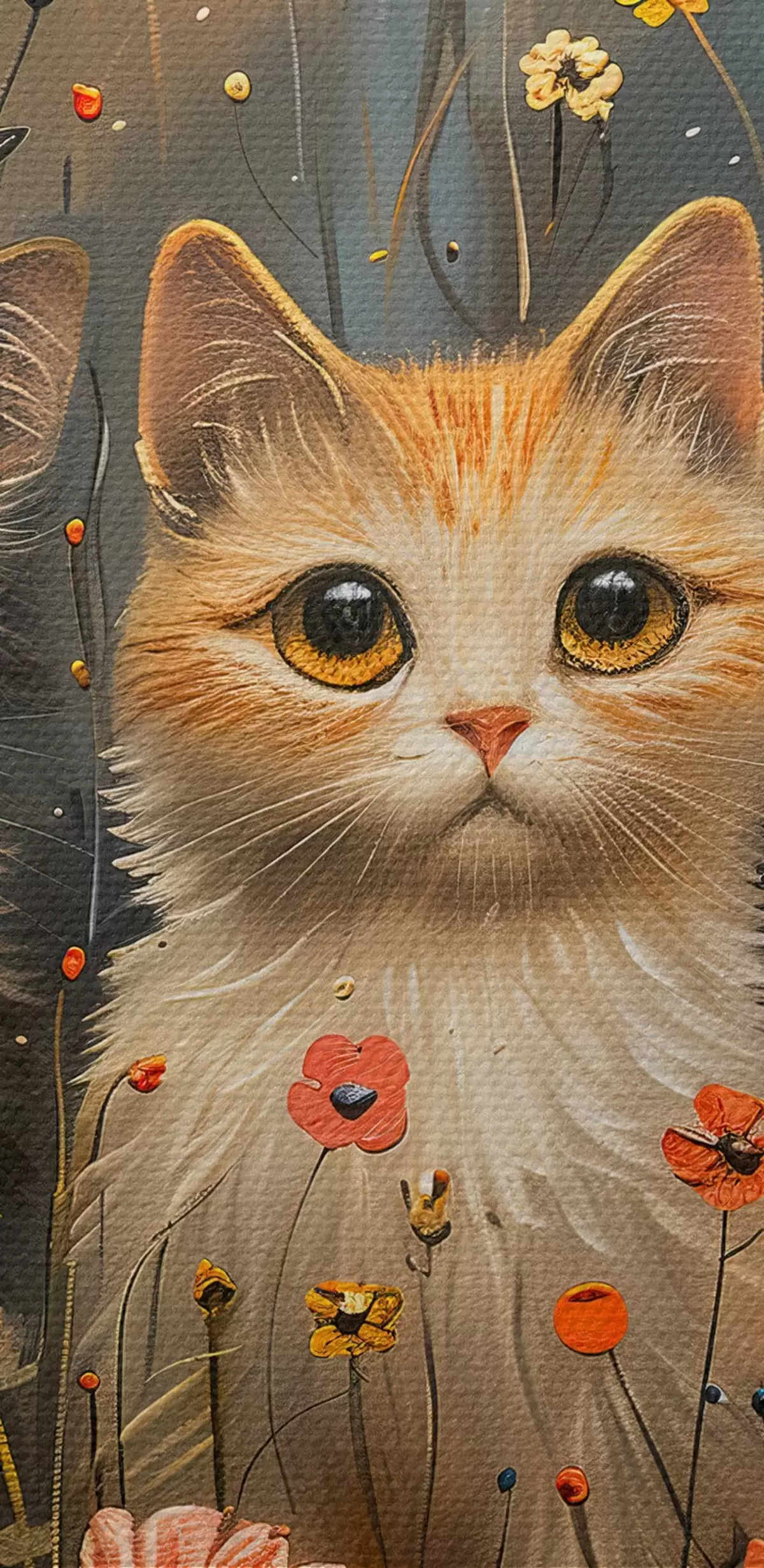 Ronde schilderijen Drie katten in wilde bloemen Nr r39012