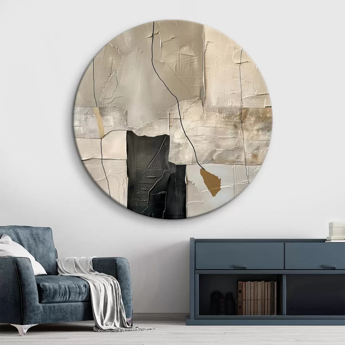 Ronde schilderijen Geometrische abstractie in beige en zwart r39016