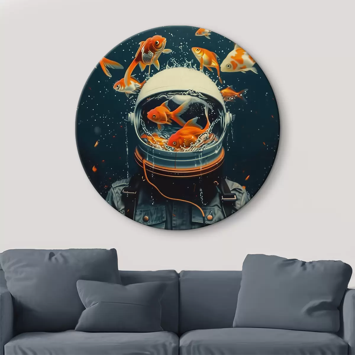 Ronde schilderijen Een astronaut en een ruimtevis Nr r39041