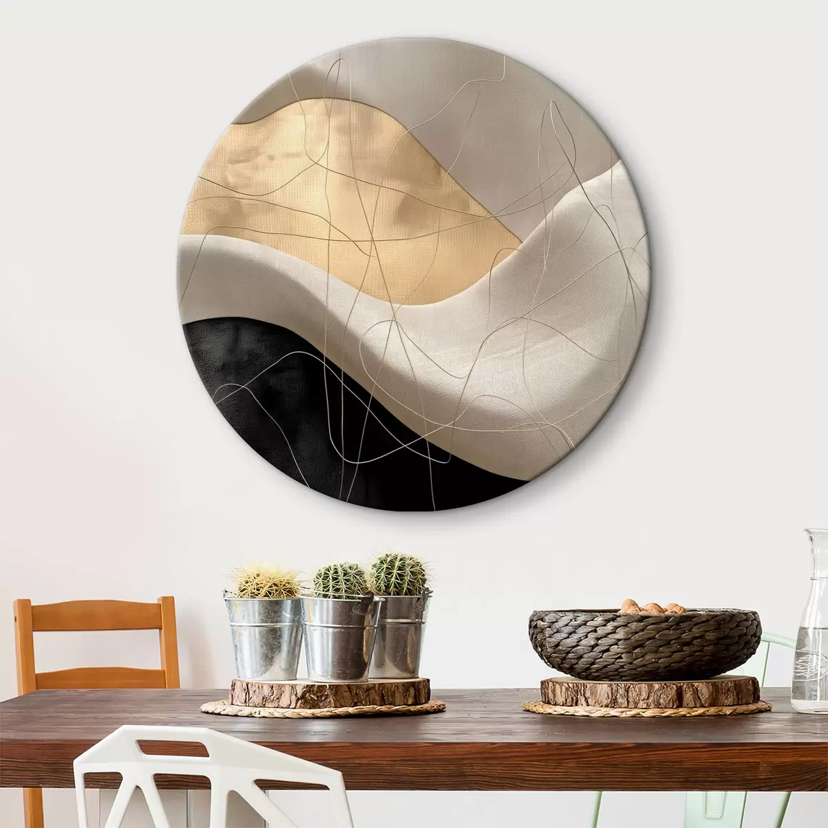 Ronde schilderijen Abstractie met golven en lijnen r39053
