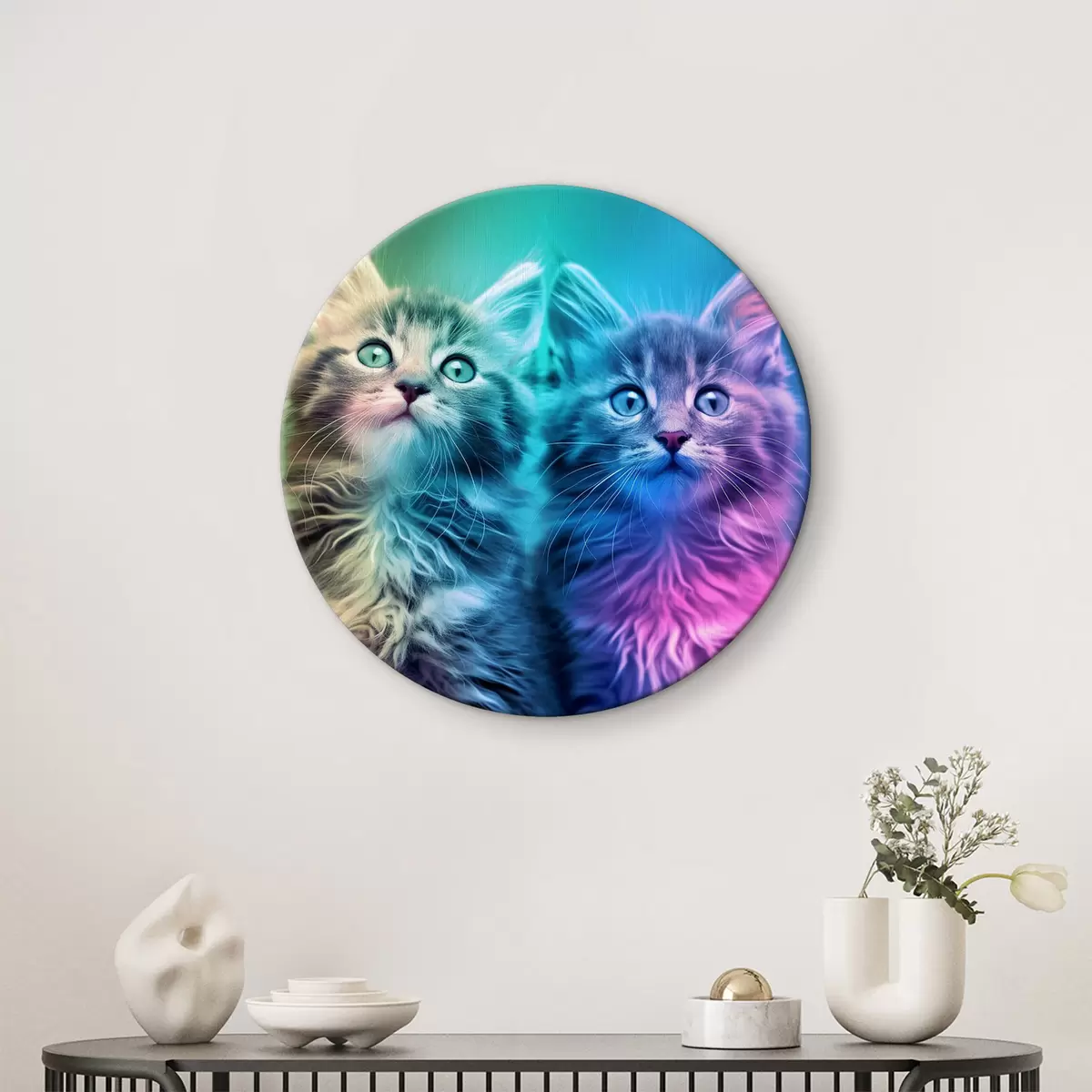 Ronde schilderijen Drie katjes r39082