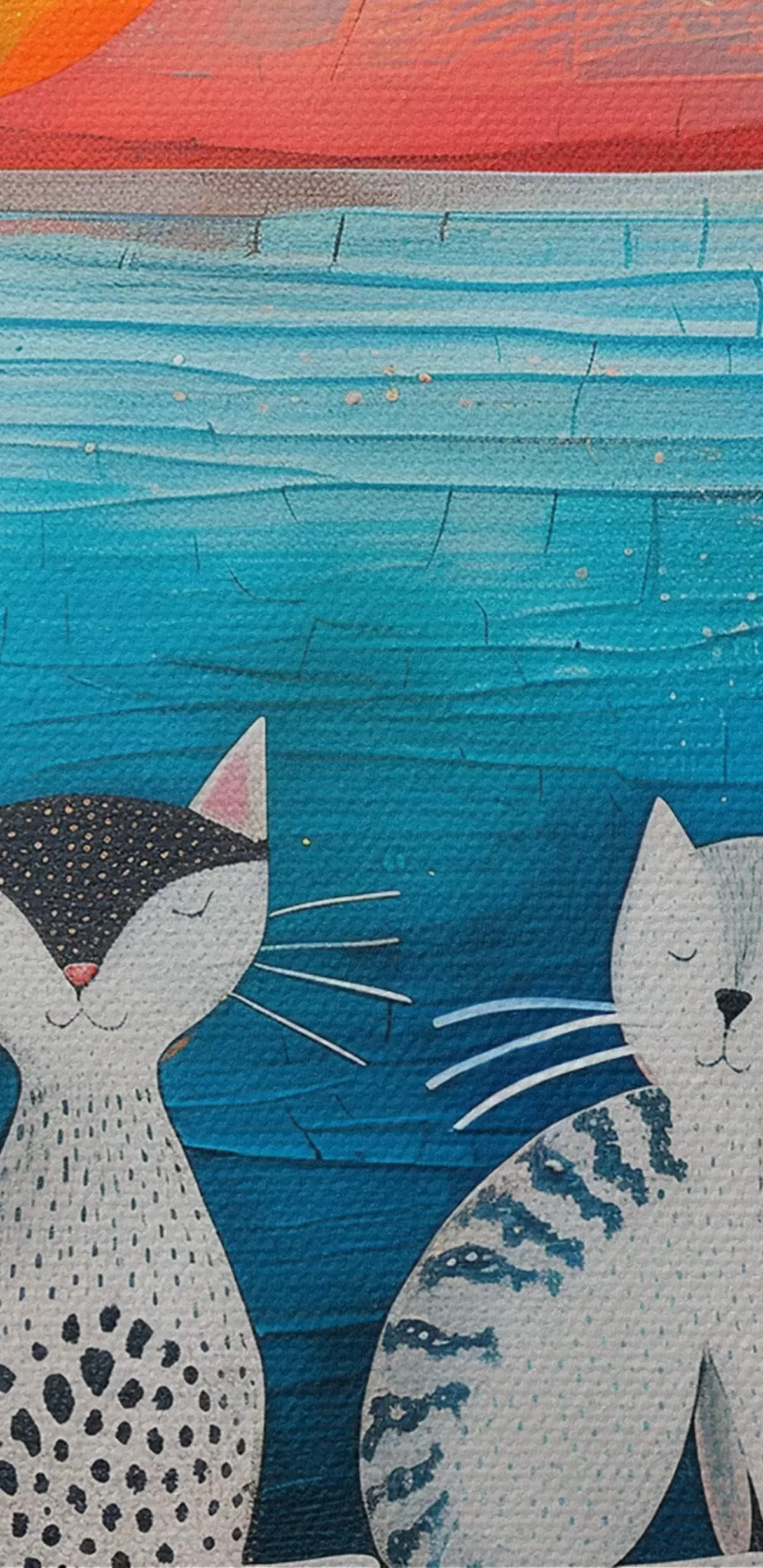Ronde schilderijen Twee katten kijken naar de zonsopgang Nr r39085
