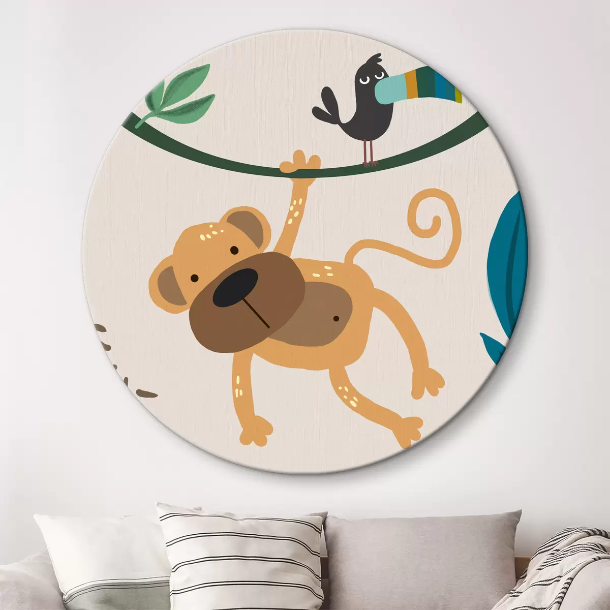 Ronde schilderijen Aap in de jungle in safaristijl, boho Nr r39094