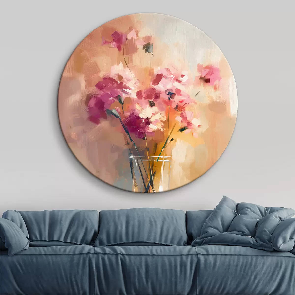 Ronde schilderijen Roze bloemen in een glas Nr r39099