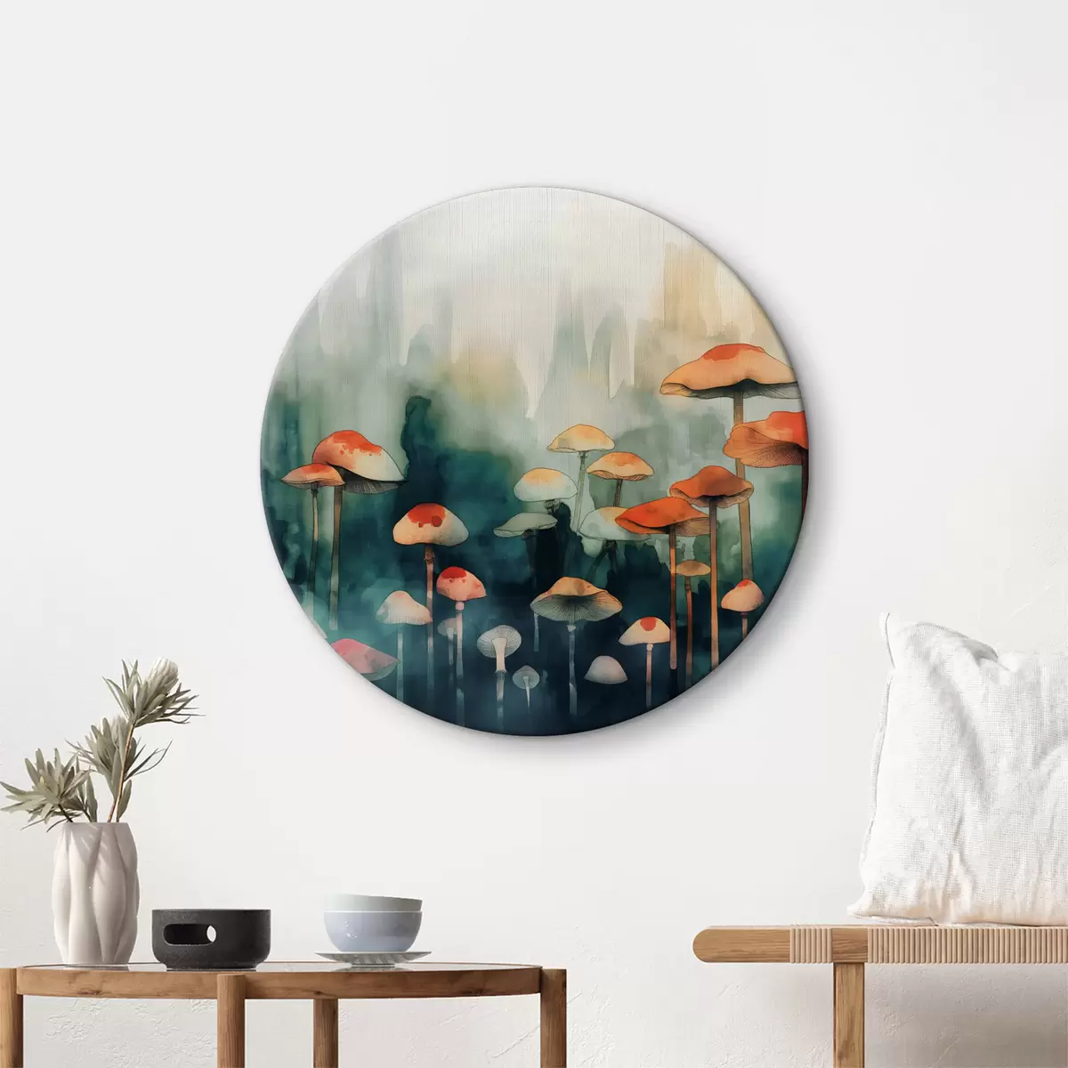 Ronde schilderijen Paddenstoelen in aquarelstijl Nr r39102
