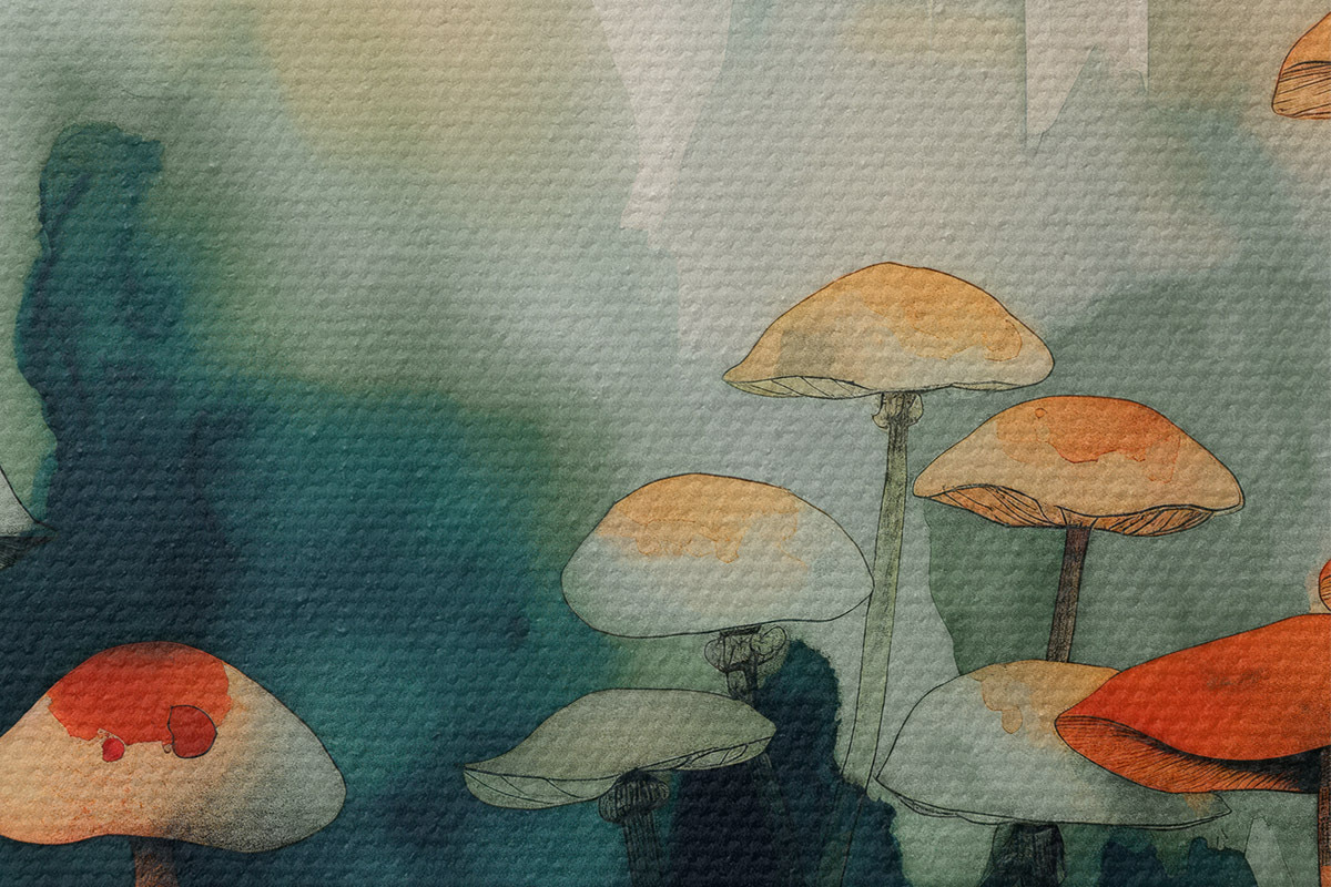 Ronde schilderijen Paddenstoelen in aquarelstijl r39102