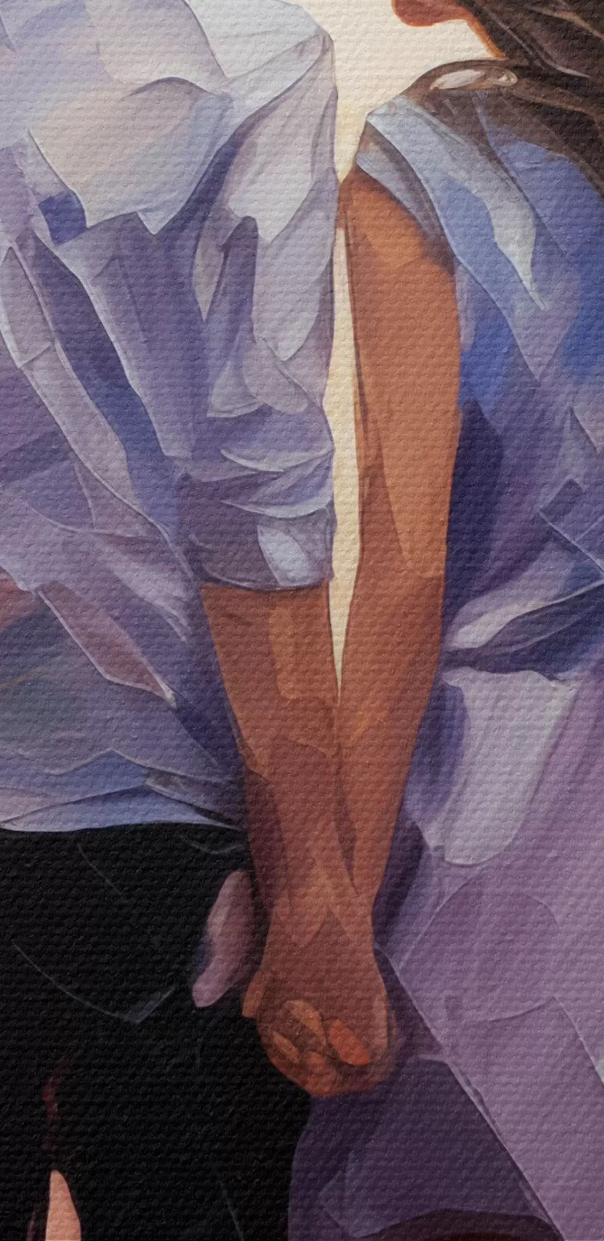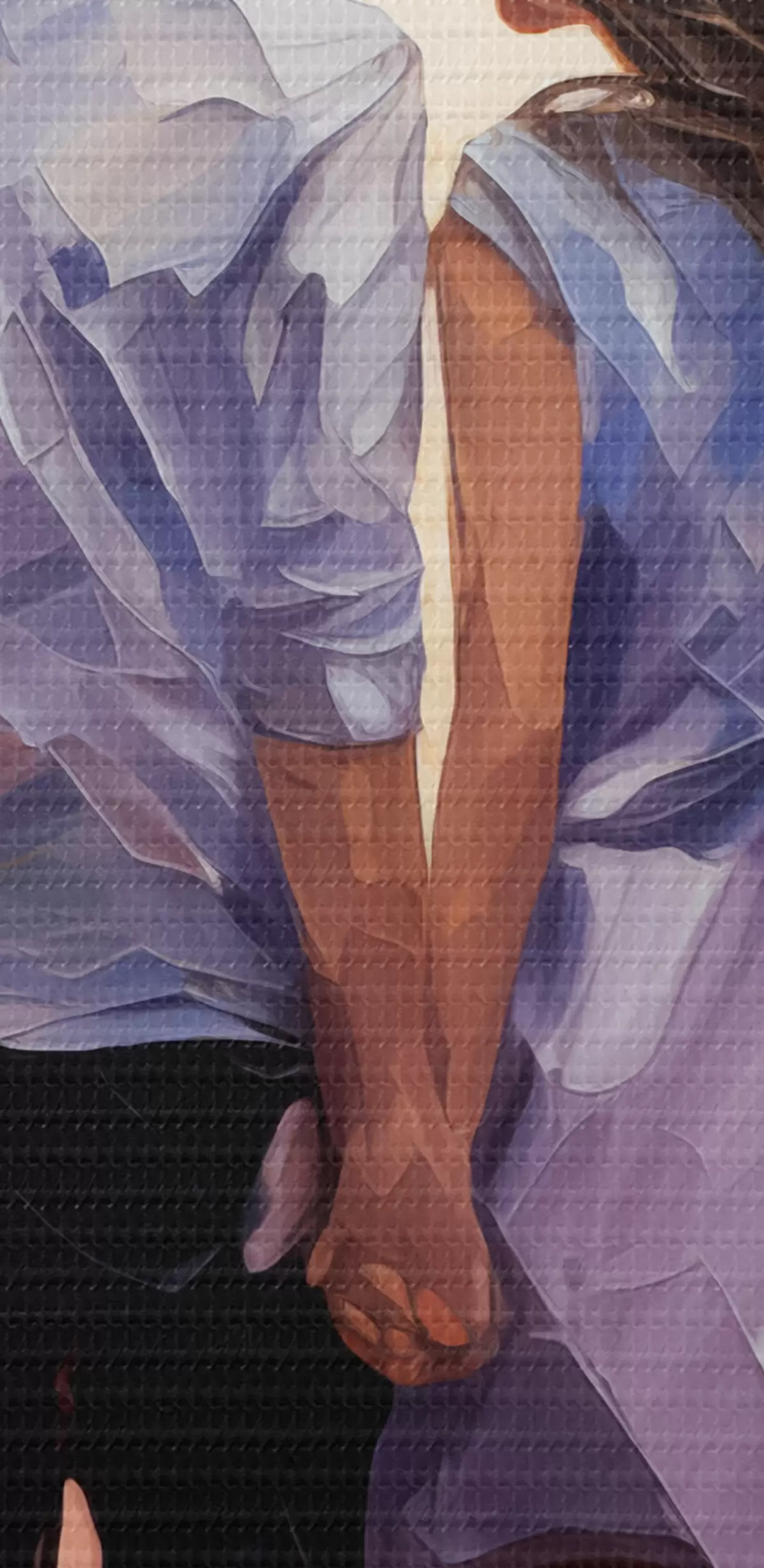 De fijne weving van draden op dit doek lijkt op het oppervlak van professionele schildersdoeken.