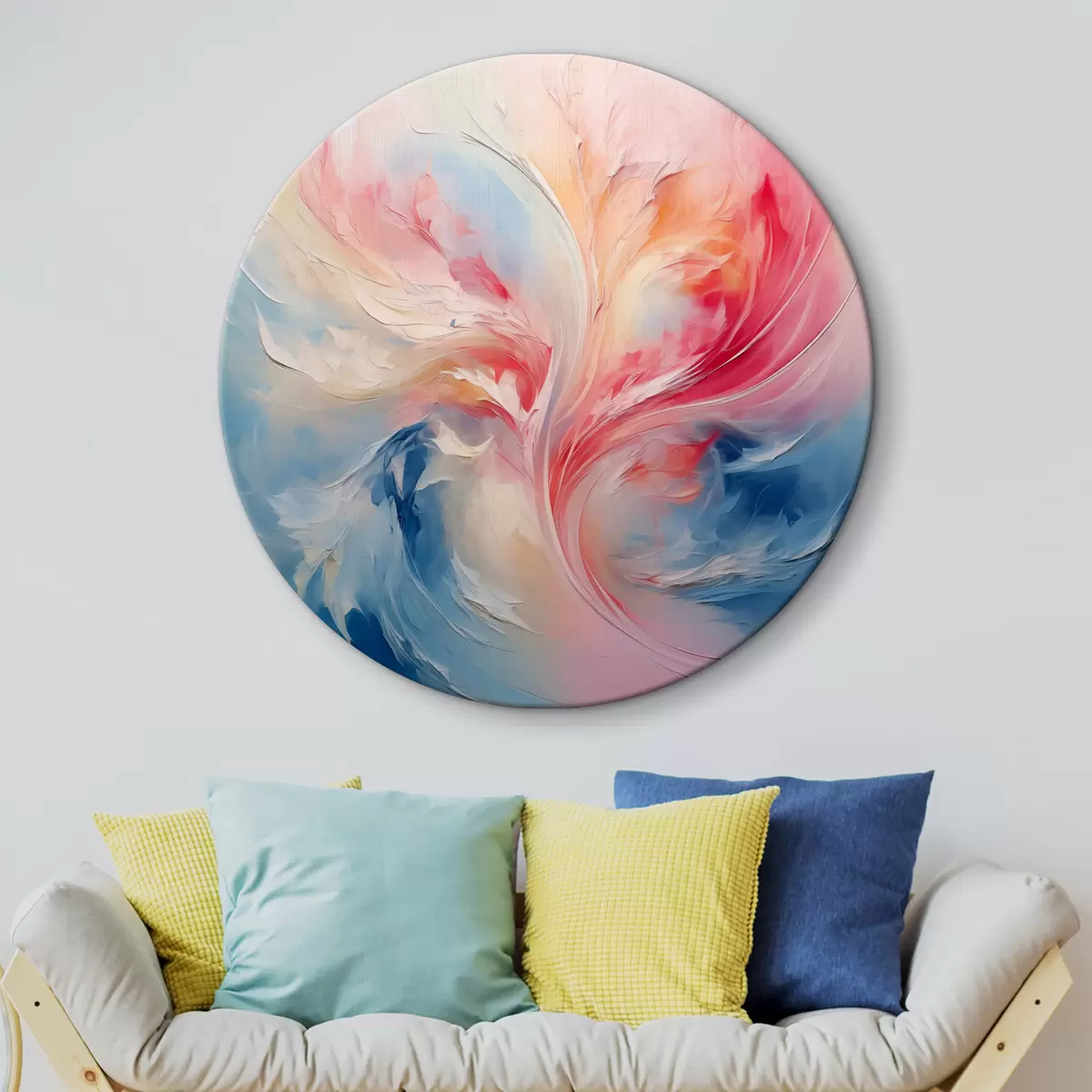 Ronde schilderijen Abstract schilderij van vleugels roze en blauwe kleur Nr r39126