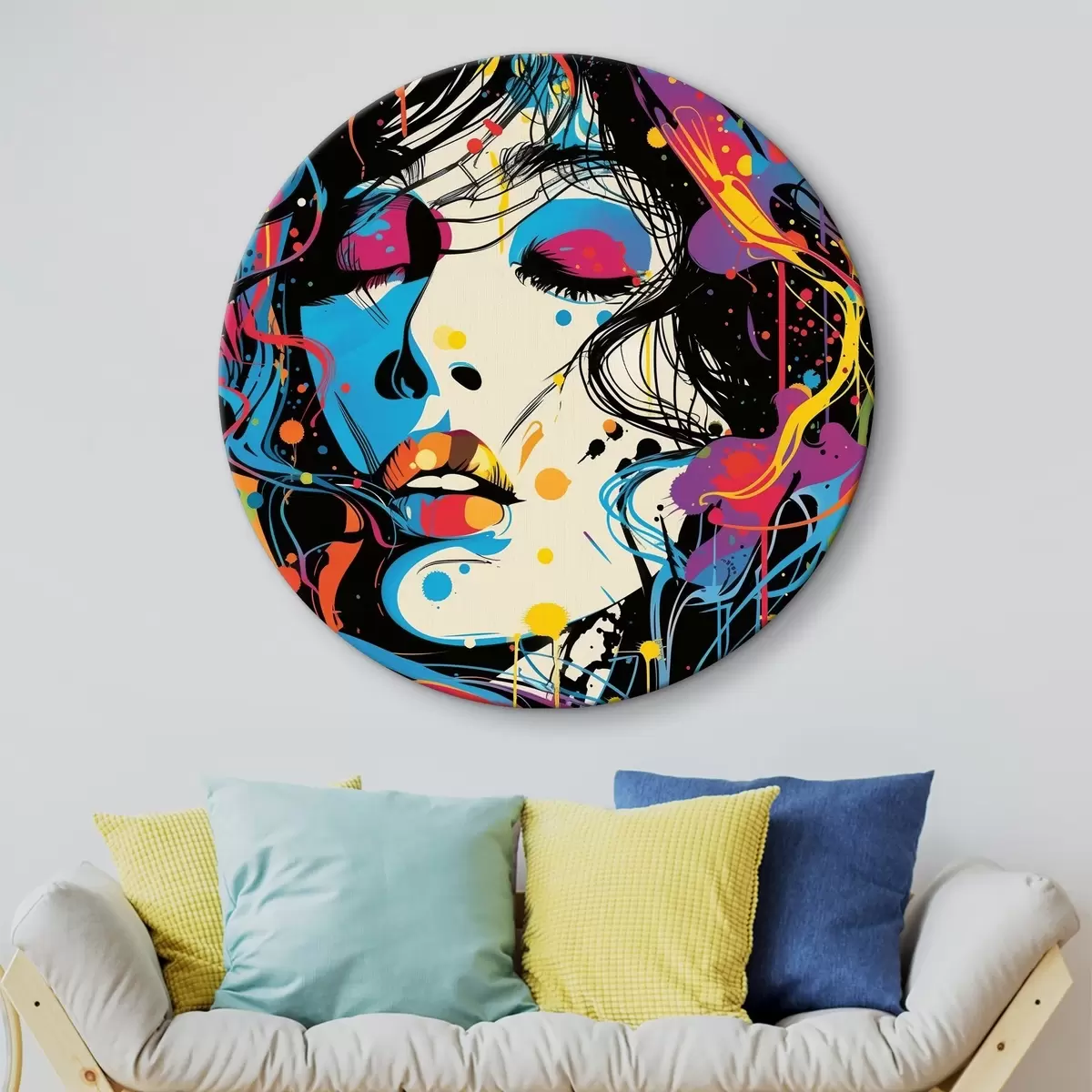 Ronde schilderijen Gezicht in kleuren Nr r39148