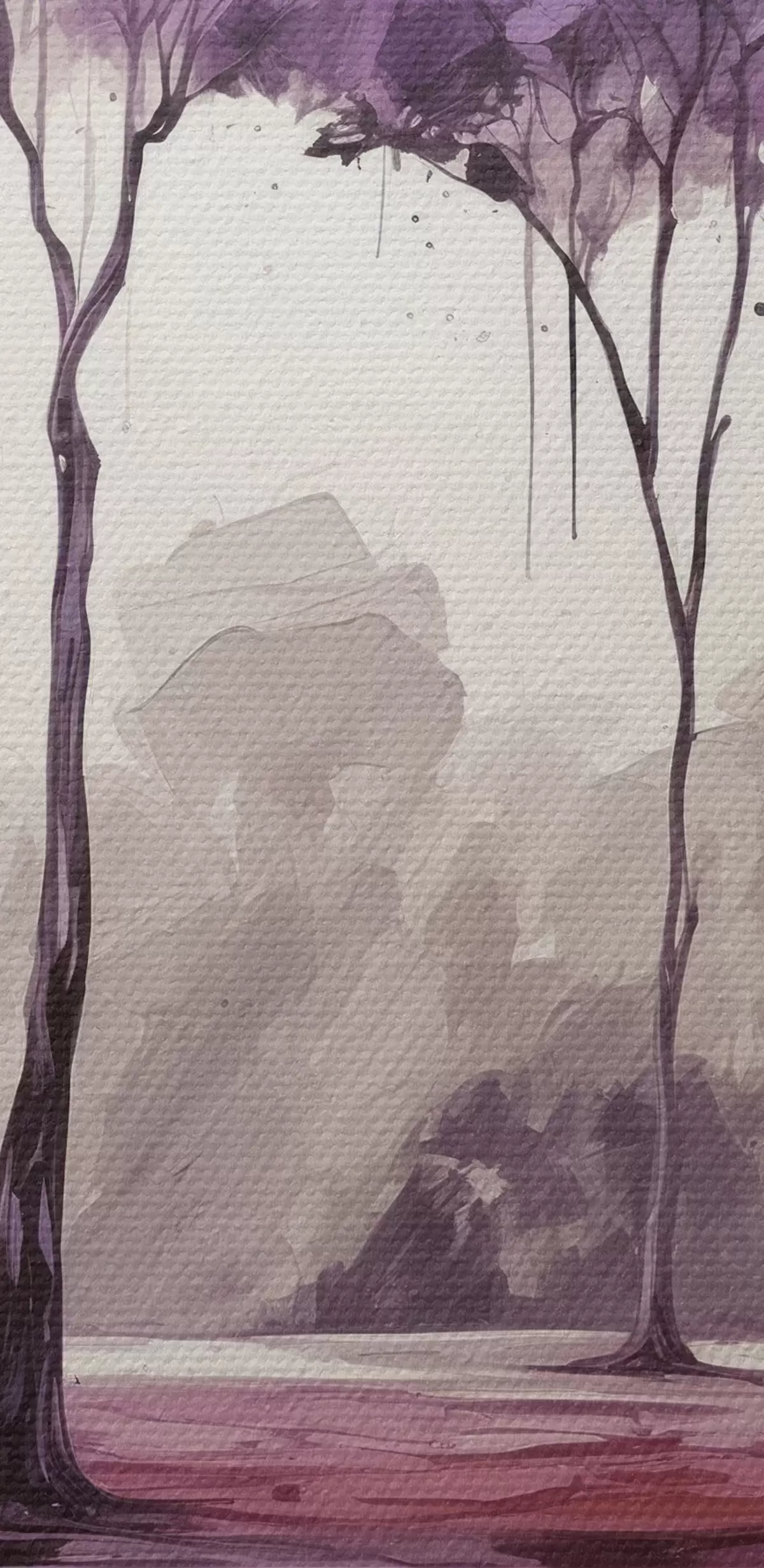 Ronde schilderijen Bomen met paarse bladeren op abstracte achtergrond Nr r39155