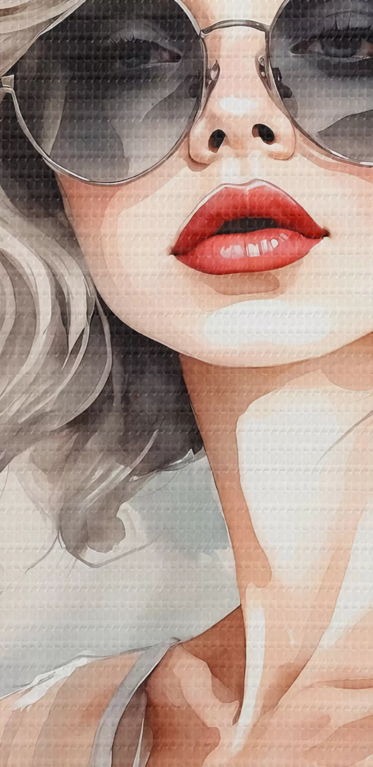 Ronde schilderijen Meisje met bril op aquarel achtergrond Nr r39158
