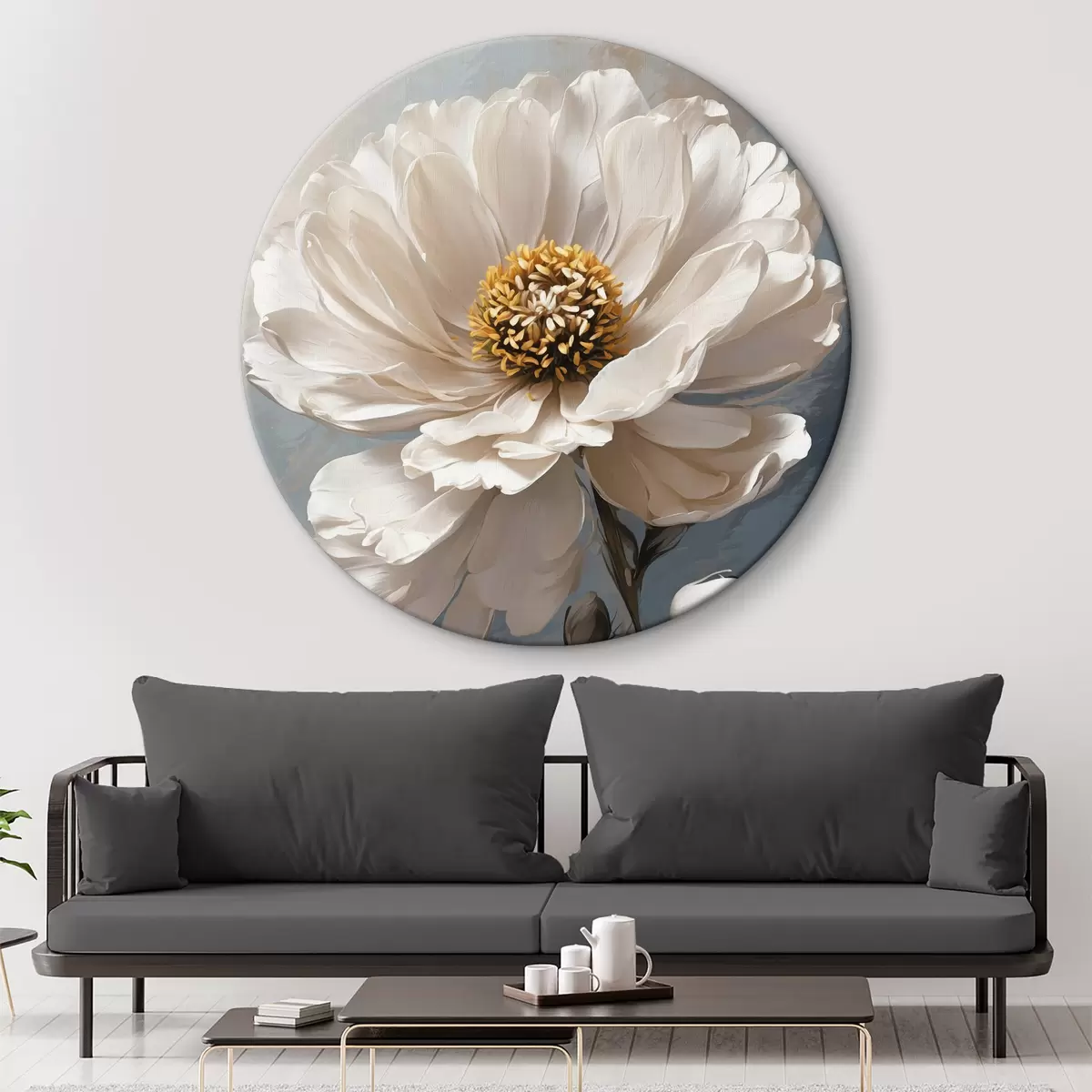 Ronde schilderijen Witte bloem op abstracte achtergrond Nr r39159