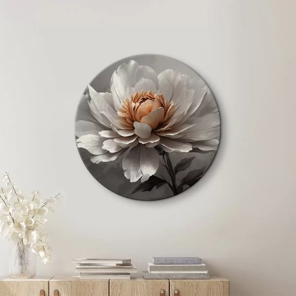 Ronde schilderijen Witte bloem op grijze achtergrond Nr r39160