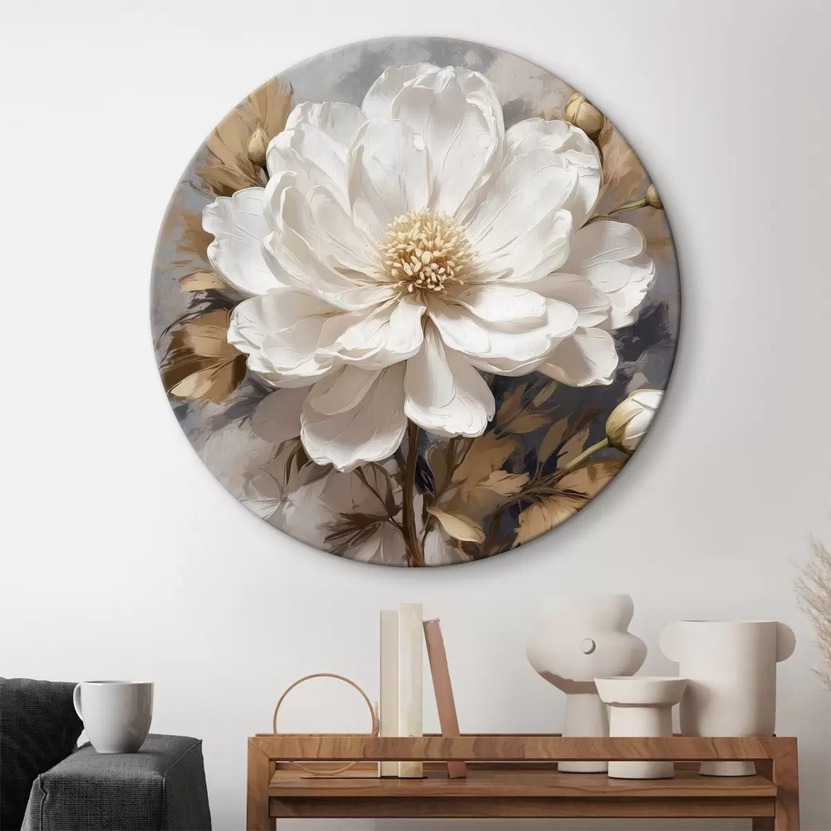 Ronde schilderijen Witte bloem met steel Nr r39166