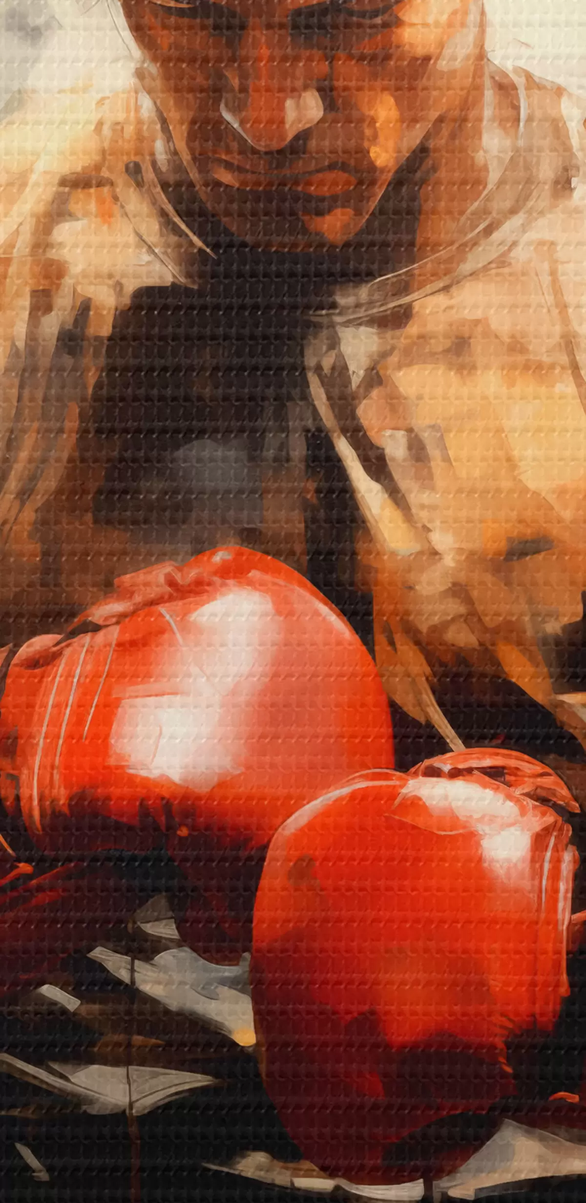 Ronde schilderijen Bokser in rode handschoenen olieverfschilderij Nr r39180