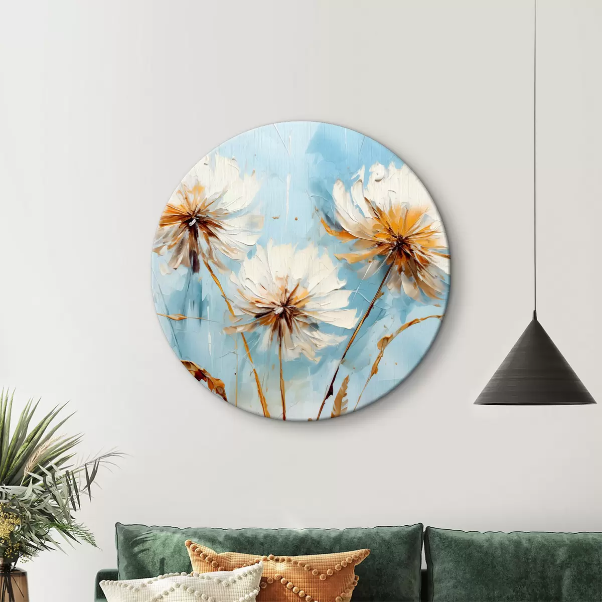 Ronde schilderijen Witte paardebloemen op een blauwe achtergrond abstracte kunst schilderij Nr r39198